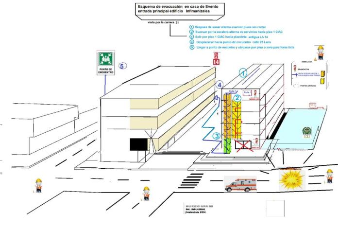 El simulacro que se desarrollará en horas de la mañana, consistirá en la explosión de una bomba y una granada de humo por fuera del edificio, lo cual implicará la evacuación de todo el personal de las entidades que laboran en el mismo, asimismo, se hará cierre vial en la carrera 21 con calle 29 y el punto de encuentro será sobre la calle 28 contiguo al colegio LANS.